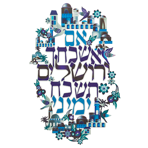 אם אשכחך ירושלים ברכה ממתכת גווני כחול 30×20 ס"מ