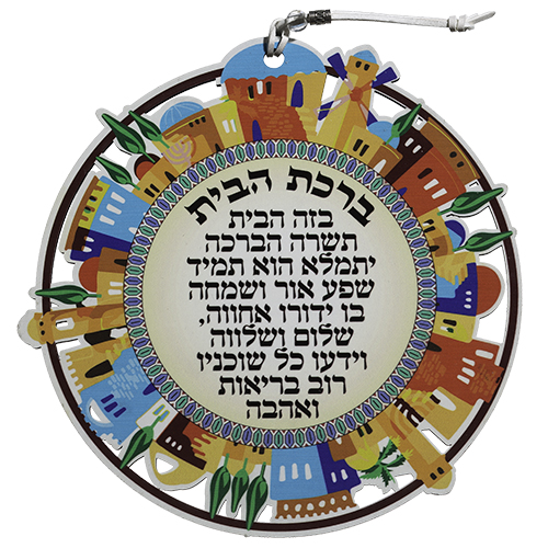 ברכת הבית עברית עיגול צבעוני דגם "ירושלים" 22 ס"מ