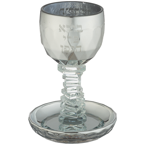 גביע קידוש זכוכית שקוף וכסף "בבא סאלי" 21 ס"מ