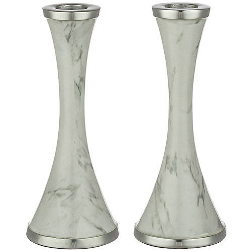 / זוג פמוטי אלומניום שיש לבן 17.5 ס"מ