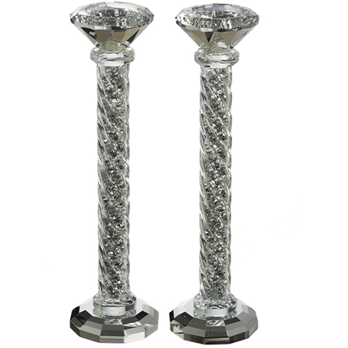/ זוג פמוטי קריסטל מהודרים עם אבנים כסף 25.5 ס"מ