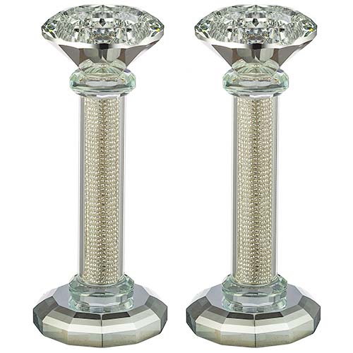 / זוג פמוטי קריסטל מהודרים עם יהלומים לבנים וקנים כסף 16.5 ס"מ