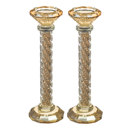 / זוג פמוטי קריסטל מהודרים עם יהלומי זהב 22.5 ס"מ