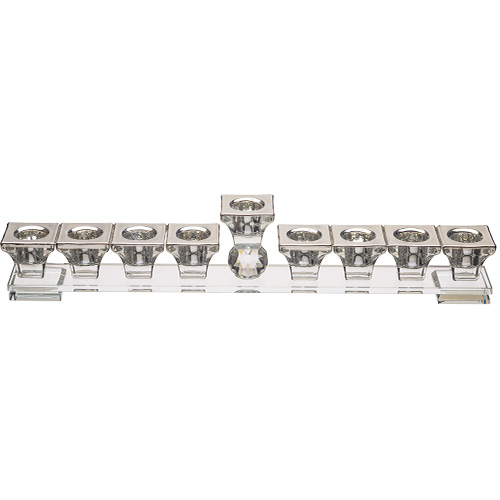 חנוכייה קריסטל מהודרת – כסף 37×6 ס"מ