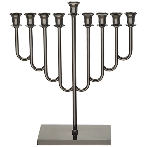Metal Menorah 36 cm- Blackened Nickel Finish מיועד לנרות ושמן