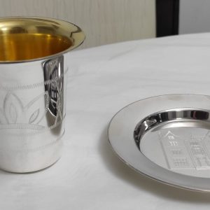 כוס קידוש מנירוסטה עבודת פטיש טבעות צבעוני