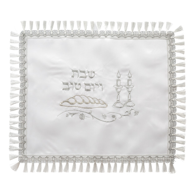 כיסוי חלה לבן מסטן מהודר 52×42 ס"מ