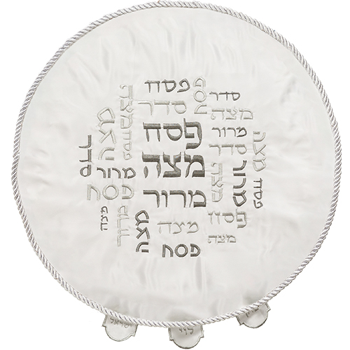 כיסוי פסח מהודר לבן מסטן "פסח מצה ומרור " עם רקמה צבעונית