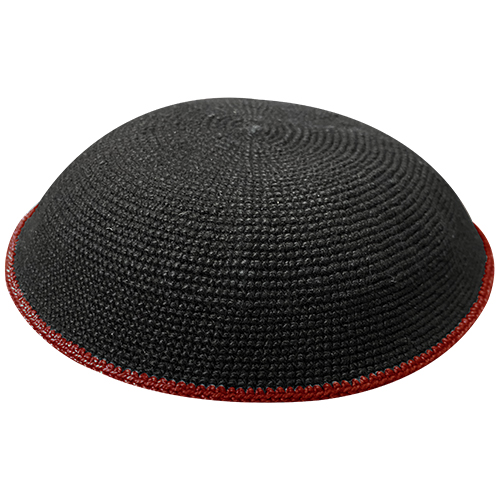 כיפה דמצ שחור עם פס בורדו מסביב 16 ס"מ סריגה צפופה