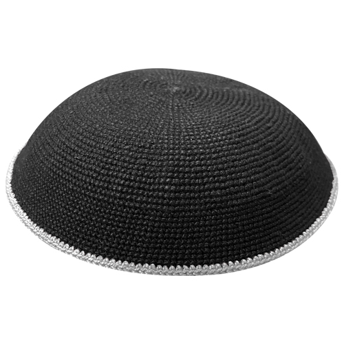 כיפה דמצ שחור עם פס לבן מסביב 20 ס"מ סריגה צפופה