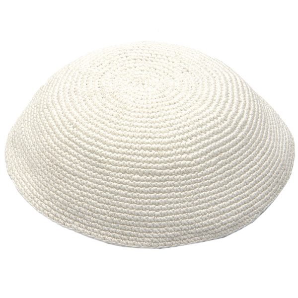 Knitted D.M.C Kippah 16 cm – Sheer WHITE