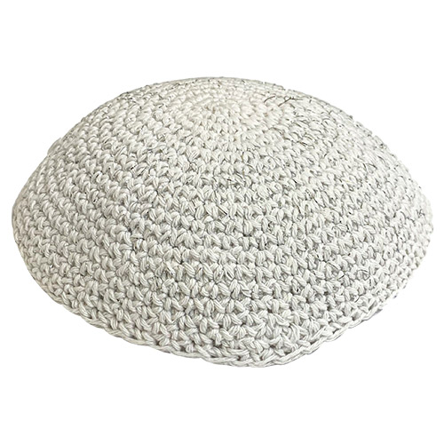 כיפה סרוגה 17 ס"מ מחורר לבן מגן דויד בכסף