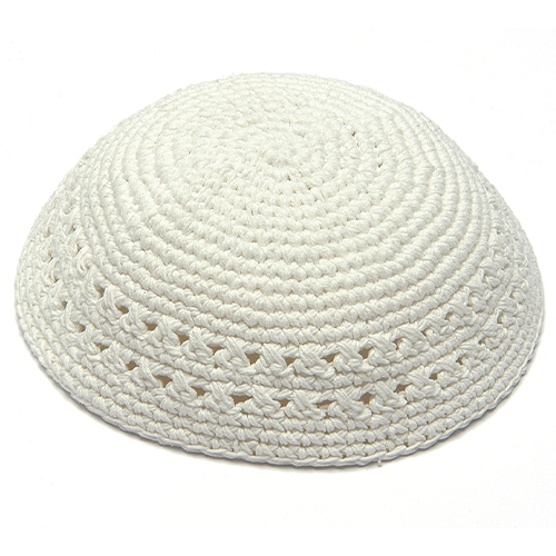 / כיפה סרוגה 20 ס"מ לבן מחורר