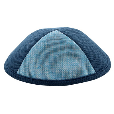 כיפה פשתן כחול ותכלת 18 ס"מ עם מקום לסיכה