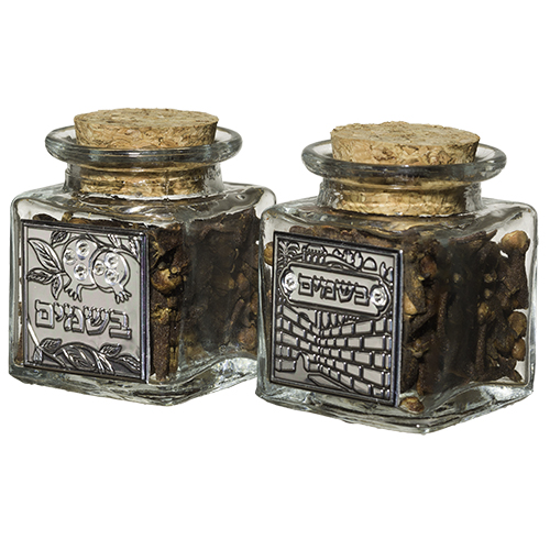 Glass Besamim Holder With Metal Plaque, Assorted Designs 6 Cm