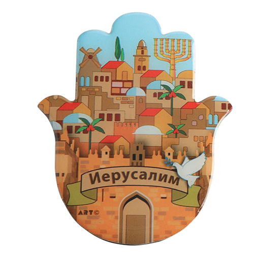 / מגנט אפוקסי צורת חמסה "ירושלים" רוסית 9 ס"מ