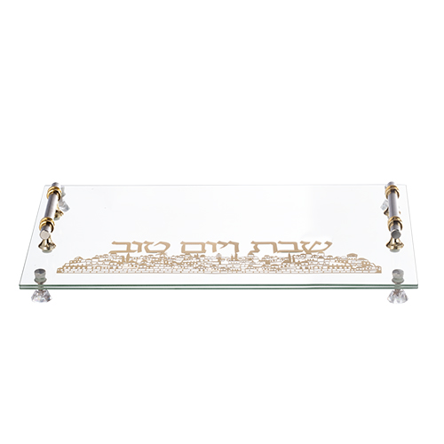 / מגש חלה מהודר מזכוכית עם פלקטה "ירושלים" 30*45 ס"מ