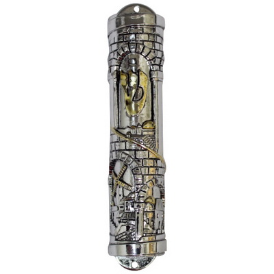 מזוזה פוליריזן 12 ס"מ כסף וזהב קשת ירושלים