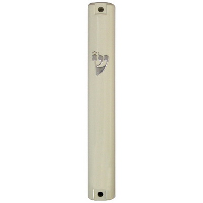 מזוזה פלסטיק צבע בז' ש' כסף גודל 12 ס"מ פקק גומי