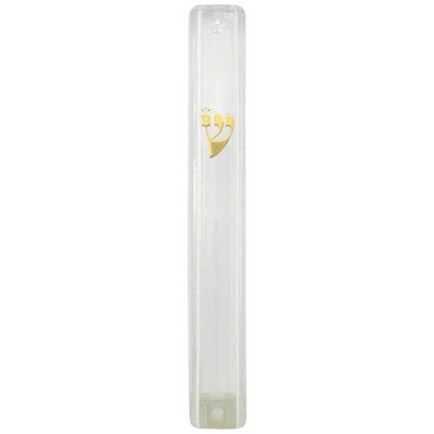 מזוזה פלסטיק שקוף ש' זהב גודל 12 ס"מ פקק גומי