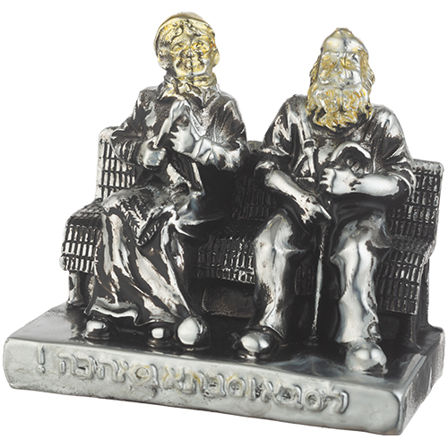 חסיד יושב מפוליריזן מוכסף ואמייל עם רגלי בד כסף