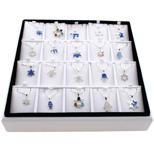Full Display- 20 Pendants Inlaid With Stones And Chains דגמים שונים,כולל מתקן תצוגה