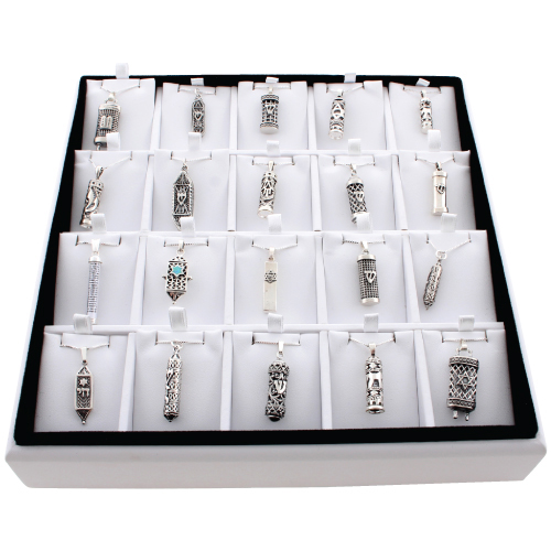 Full Display- 20 Mezuzah Pendants With Chains דגמים שונים,כולל מתקן תצוגה