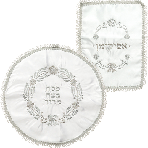 / סט פסח ואפיקומן רקמת כסף זר פרחים מסביב
