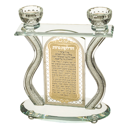 / פמוטי קריסטל עם פלקטה הדלקת נרות "עיטורים" 25 ס"מ