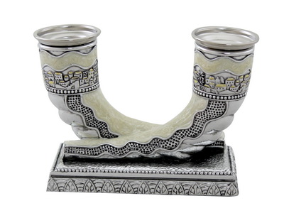 פמוטי שופר פולי מוכסף עם אמייל ירושלים 11 ס"מ