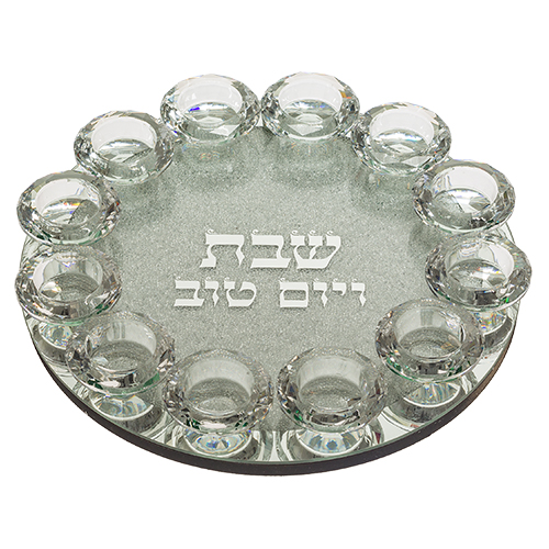 פמוט זכוכית עם אבנים 12 פמוטי קריסטל 31 ס"מ