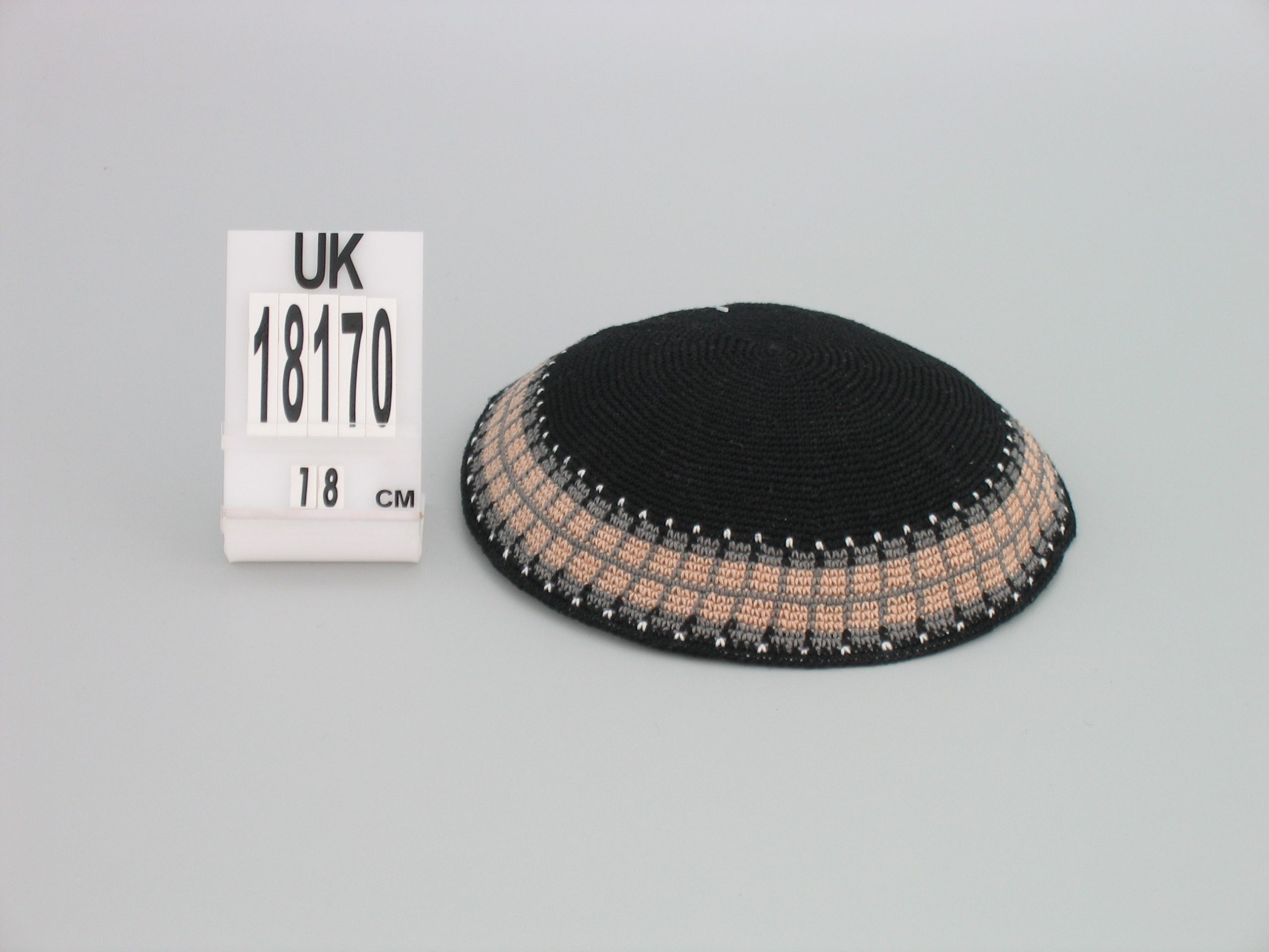 צצ כיפה ד.מ.צ. שחור עם פס אפור 18 ס"מ