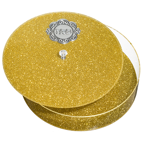קופסא למצה עגולה מפרספקס עם נצנצים ופלקטה 35.5 ס