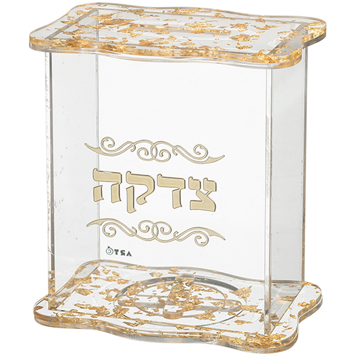 803 קופת צדקה מפרספקס זהב נצנץ 16*10 ס"מ