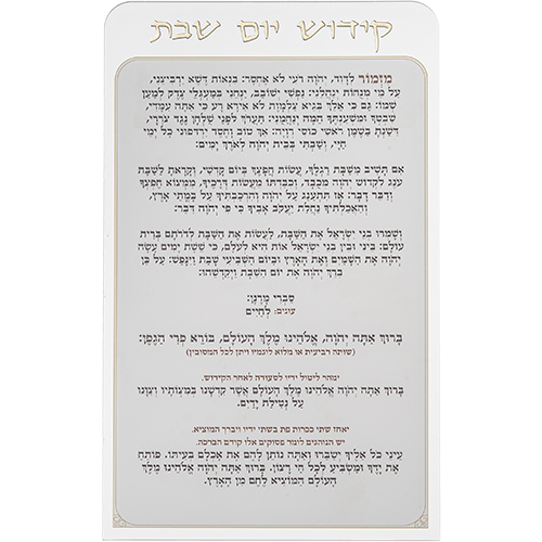קידוש יום שבת מפרספקס נוסח עדות המזרח 25X15 ס"מ