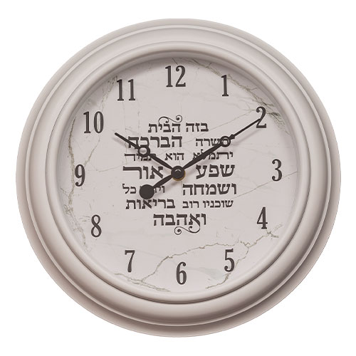 White Frame Clock with Hebrew Home Blessing 30 cm
