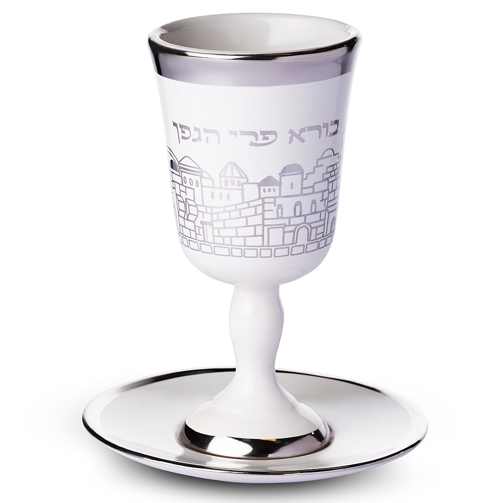 Ceramic Kiddush Cup 15 cm with Saucer