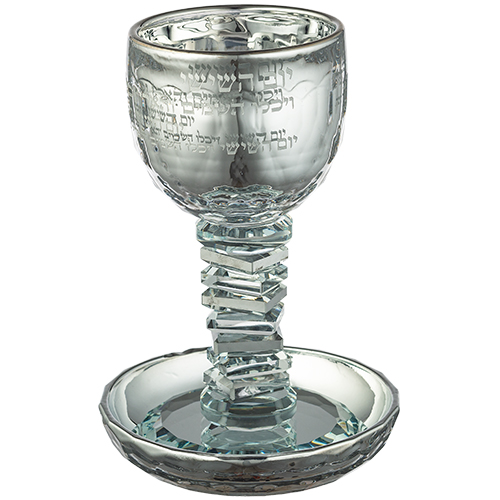 גביע קידוש קריסטל כסף מהודר "ברכה" 16 ס"מ