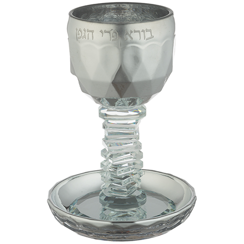 גביע קידוש זכוכית שקוף וכסף "ירושלים" 21 ס"מ