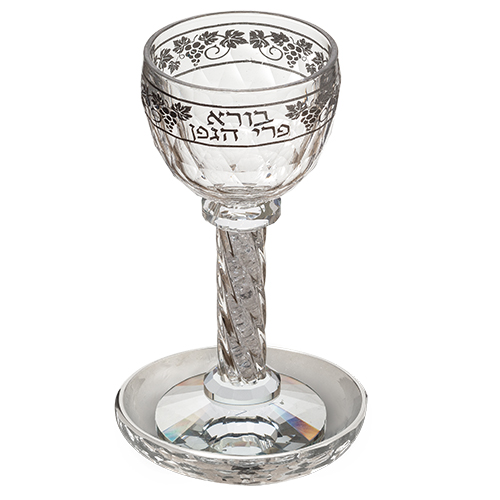 גביע קריסטל רגל אבנים לבנות עיטור כסף גפן 18 ס"מ