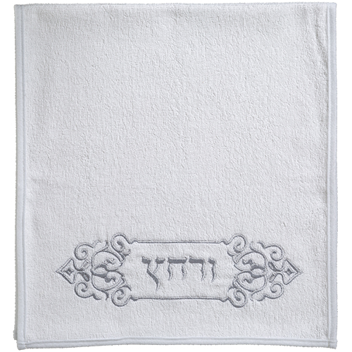 זוג מגבות לבנות "נטילת ידיים" עם שיבוץ אבנים מהודר