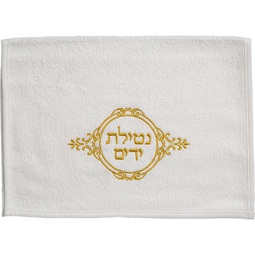זוג מגבות לבנות עם ריקמה "נטילת ידיים" 72*34 ס"מ