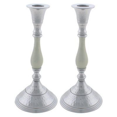 זוג פמוטי מתכת מרוקעות מהודרים גוון פנינה עם נצנצים