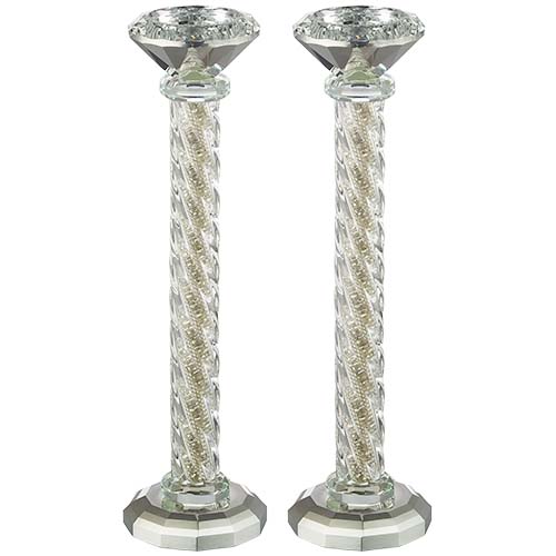 / זוג פמוטי קריסטל מהודרים עם יהלומים לבנים 25.5 ס"מ