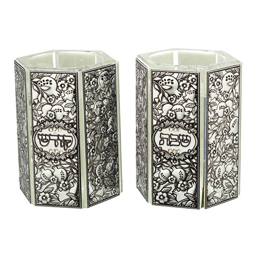 זוג פמוטי קריסטל מהודרים עם פלקטה "רימונים" 8×5 ס"מ