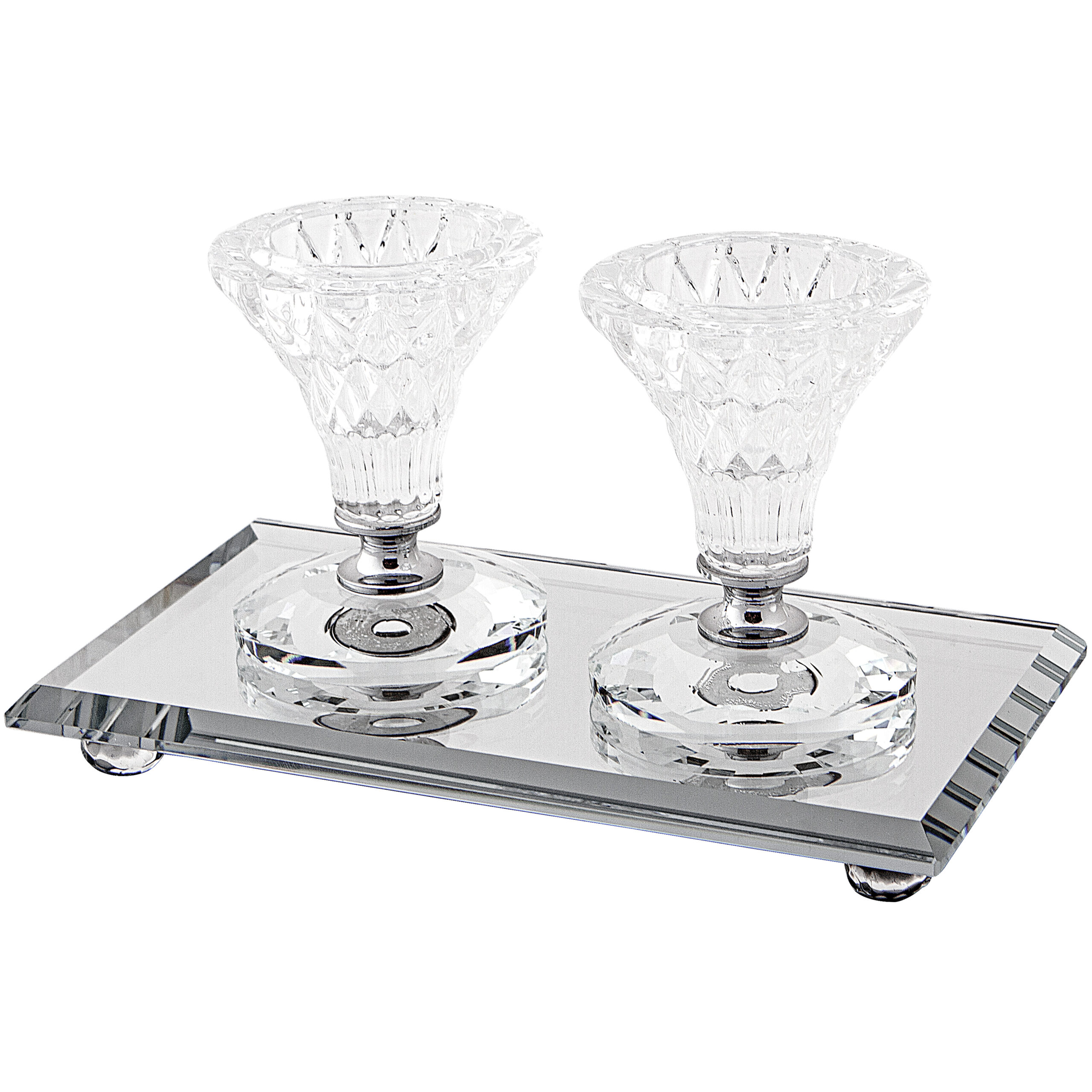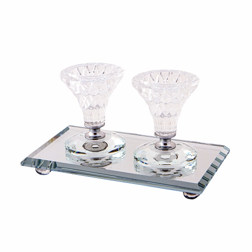זוג פמוטי קריסטל מהודרים 8 ס"מ עם מגש מהודר 18X10 ס"מ