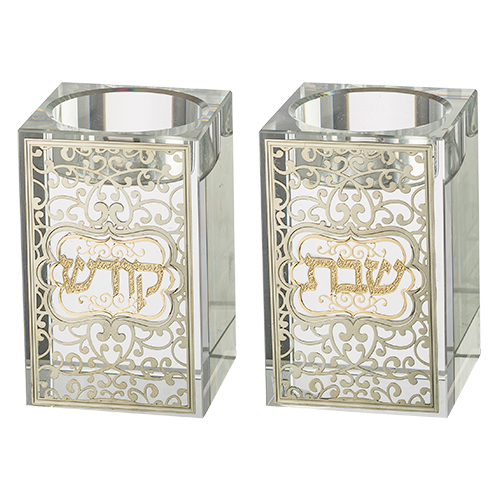 Crystal Candlesticks 8 cm with Metal Plaque- Ornaments