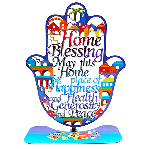 / חמסה "ירושלים" חיתוך לייזר עם בסיס, ברכת הבית אנגלית 24 ס"מ