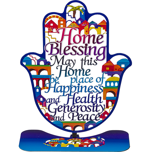 / חמסה "ירושלים" חיתוך לייזר עם בסיס, ברכת הבית אנגלית 24 ס"מ