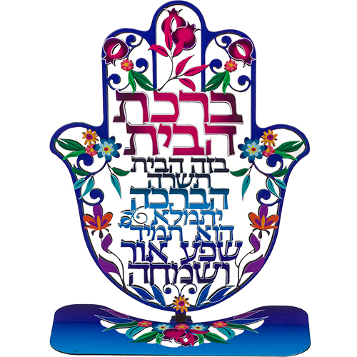 חמסה "פירחוני" חיתוך לייזר עם בסיס, ברכת הבית עברי